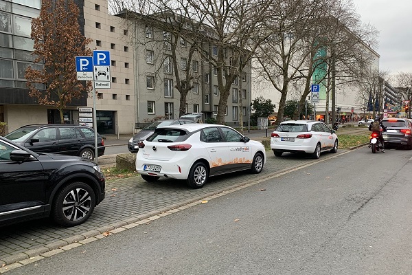 Unsere erste Station im Dellviertel befindet sich in der Düsseldorfer Straße. Die beiden Stellplätze befinden sich auf dem Parkstreifen in der Straßenmitte auf Höhe der Hausnummer 42 (beim Lehmbruck-Museum).