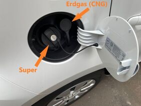 Vollgetankt verfügt er, je nach Fahrweise, über eine Reichweite von etwa 250 - 270 km. Mit dem zusätzlichen Benzintank erweitert sich die Reichweite um etwa weitere 150 km. Die nächste Tankstelle in Ettlingen, an der Sie Erdgas (CNG) tanken können, ist die Aral Tankstelle in der Karlsruher Straße, nähe der Autobahn.