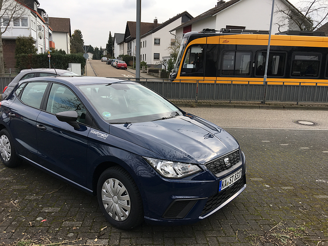 Die neue Station befindet sich in Mörsch in der Narzissenstraße, direkt an der Straßenbahnhaltestelle Mörsch- Narzissenstraße. Es gibt keinen festen Stellplatz, der Seat Ibiza Benziner wird so nahe wir möglich an der Ecke Narzissenstraße und Rappenwörthstraße geparkt. Der Zugang erfolgt direkt am Fahrzeug.