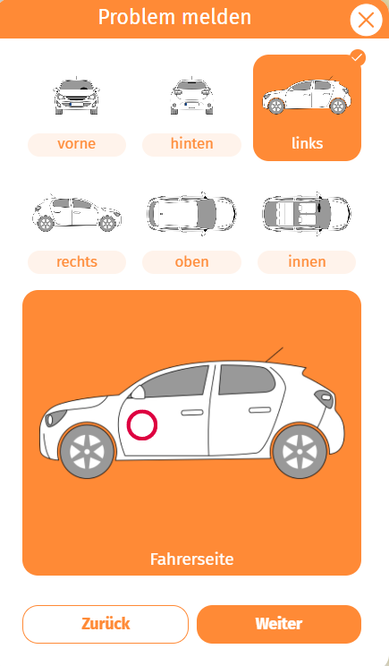 Entdecken Sie einen neuen Schaden, melden Sie diesen bitte über die Funktion “Problem melden”.
