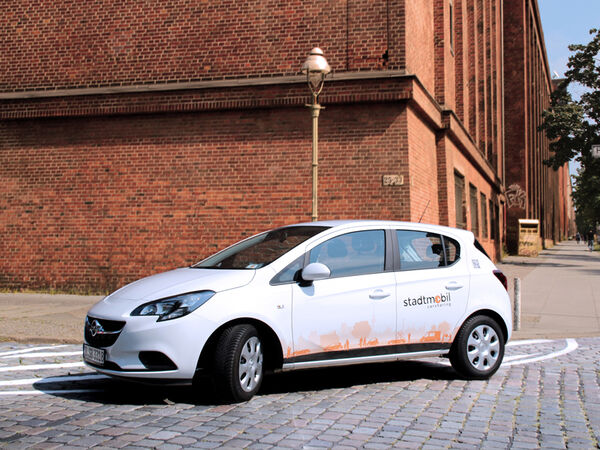 Standort: Parkplatz, an der Urbanstraße gelegen, vor dem Gebäude der Fontanepromenade 13A, gegenüber des Klinikums am Urban. Stellplatz zur Linken, am Beginn der kniehohen Betonmauer, ist mit einem Stadtmobil-Schild gekennzeichnet.
